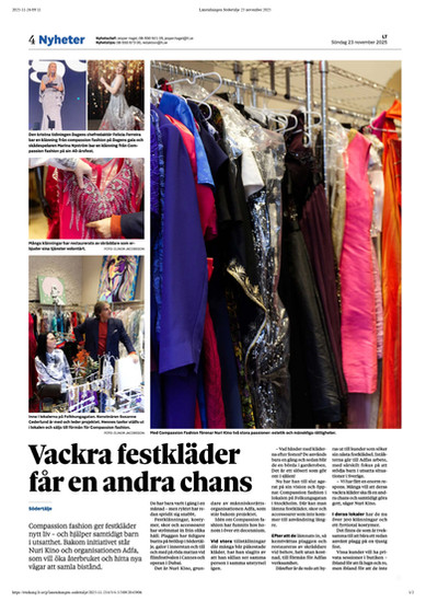 In just a short time, Compassion Fashion has dressed guests for some of Sweden’s most prestigious events: the Nobel festivities, a gala attended by Princess Madeleine, a private dinner featuring Queen Silvia, and even the 80th anniversary celebration of the daily newspaper Dagen. The very first client was a well-known Swedish actress celebrating her 40th birthday.